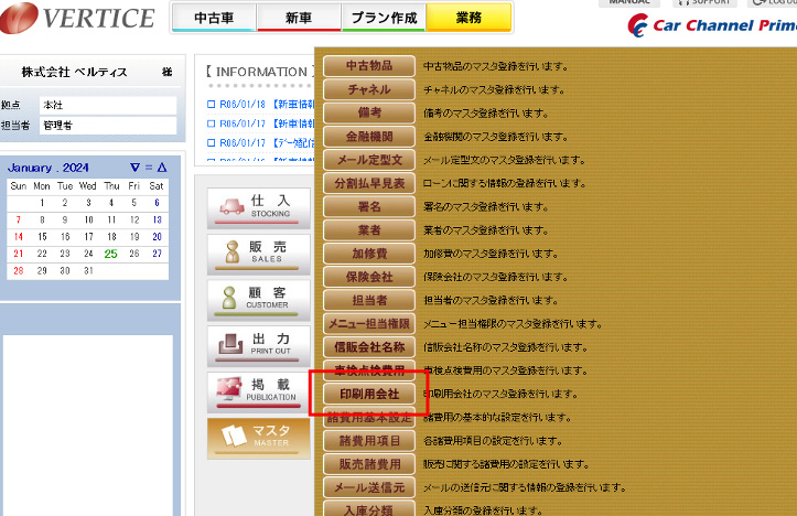 (1) 管理者でログインし、マスターメニューの印刷会社を選択します。
