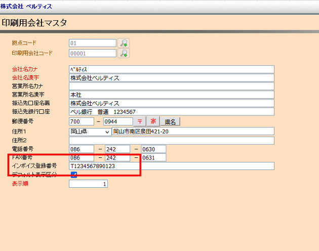 (2) 印刷会社から会社情報を呼び出し、インボイス登録番号を入力し登録を行います。