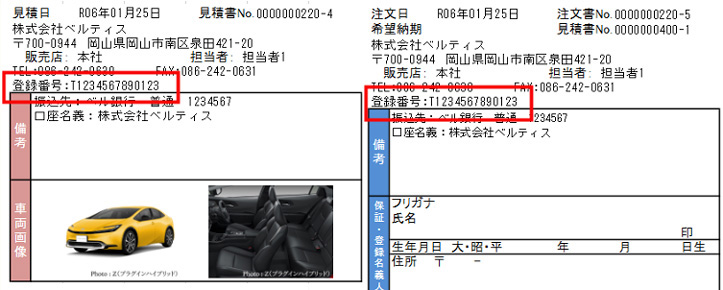 (3) 印刷会社へ登録頂きますと、見積書、注文書の会社情報に印字されます。